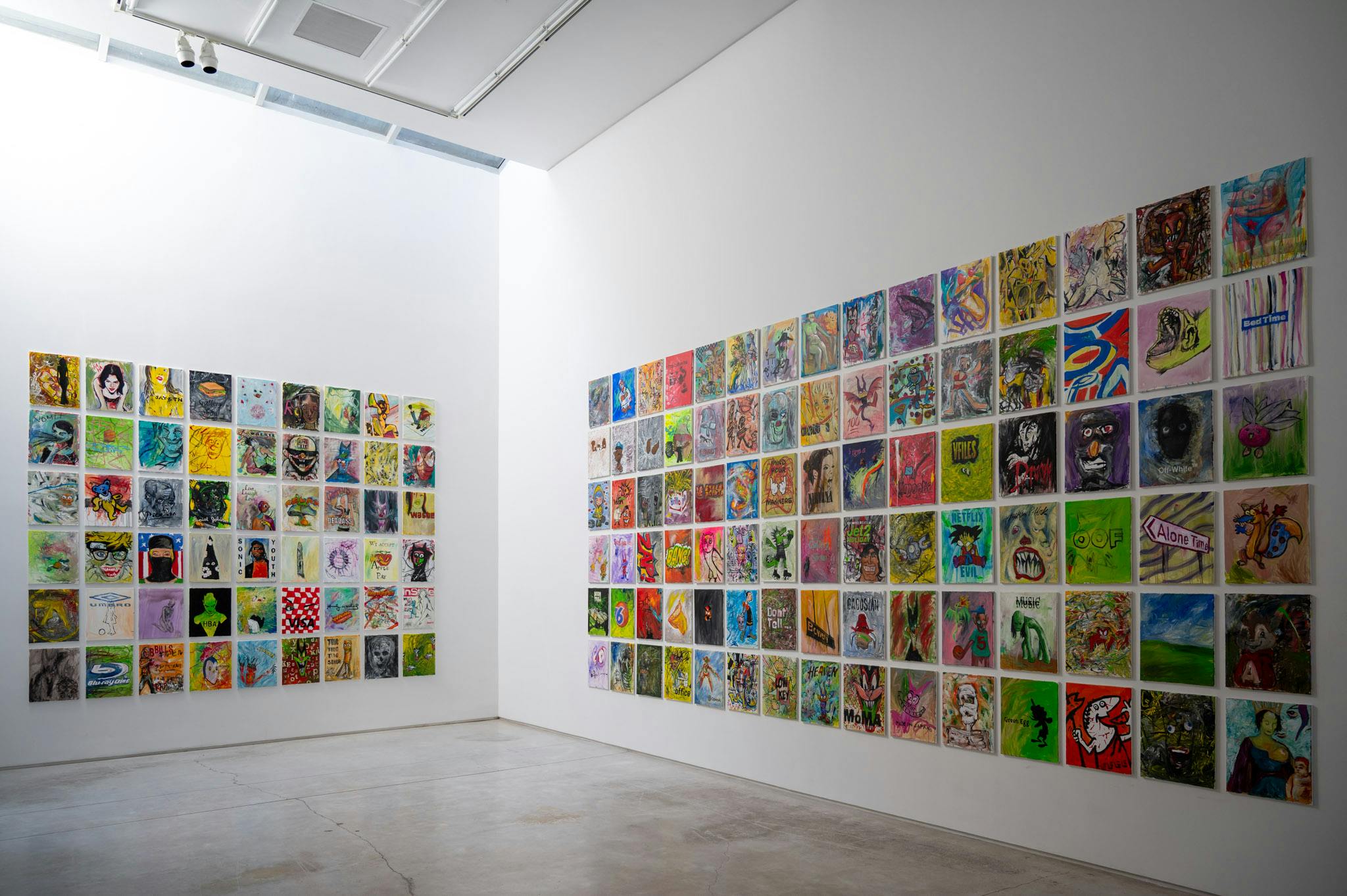 Aleqth conceives of these paintings as artifacts for future discovery, echoing the earliest cave works that transmit the voice of a vanished era. Thousands of years from now, he imagines, these canvases will be unearthed not only as individual expressions but as cultural fossils, crystallizing the spirit, humor, and contradictions of our time. Internet memes, TikTok language, art-historical lineages, anime figures, fashion logos, political detritus, and insider jokes among friends all filter through his hand, merging into a visual record of the now.