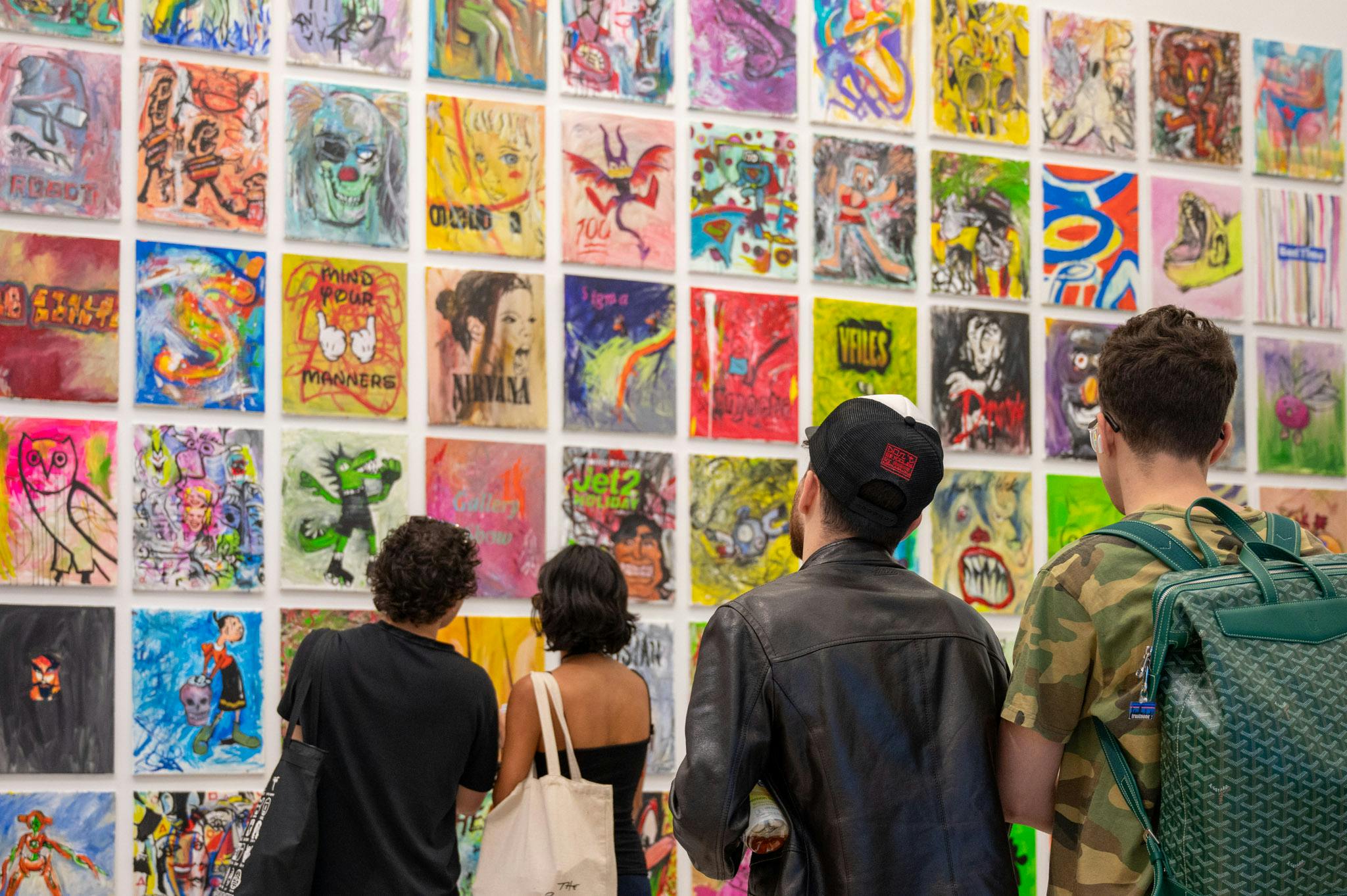 Gallery Show by Aleqth presents 200 paintings created since March, with 100 produced in just the past week. His process is relentless and simultaneous: multiple canvases worked side by side, a single brushstroke often spilling across works and binding them into one expanded field. Each piece becomes a timestamp, a relic of the present moment pressed into material form.