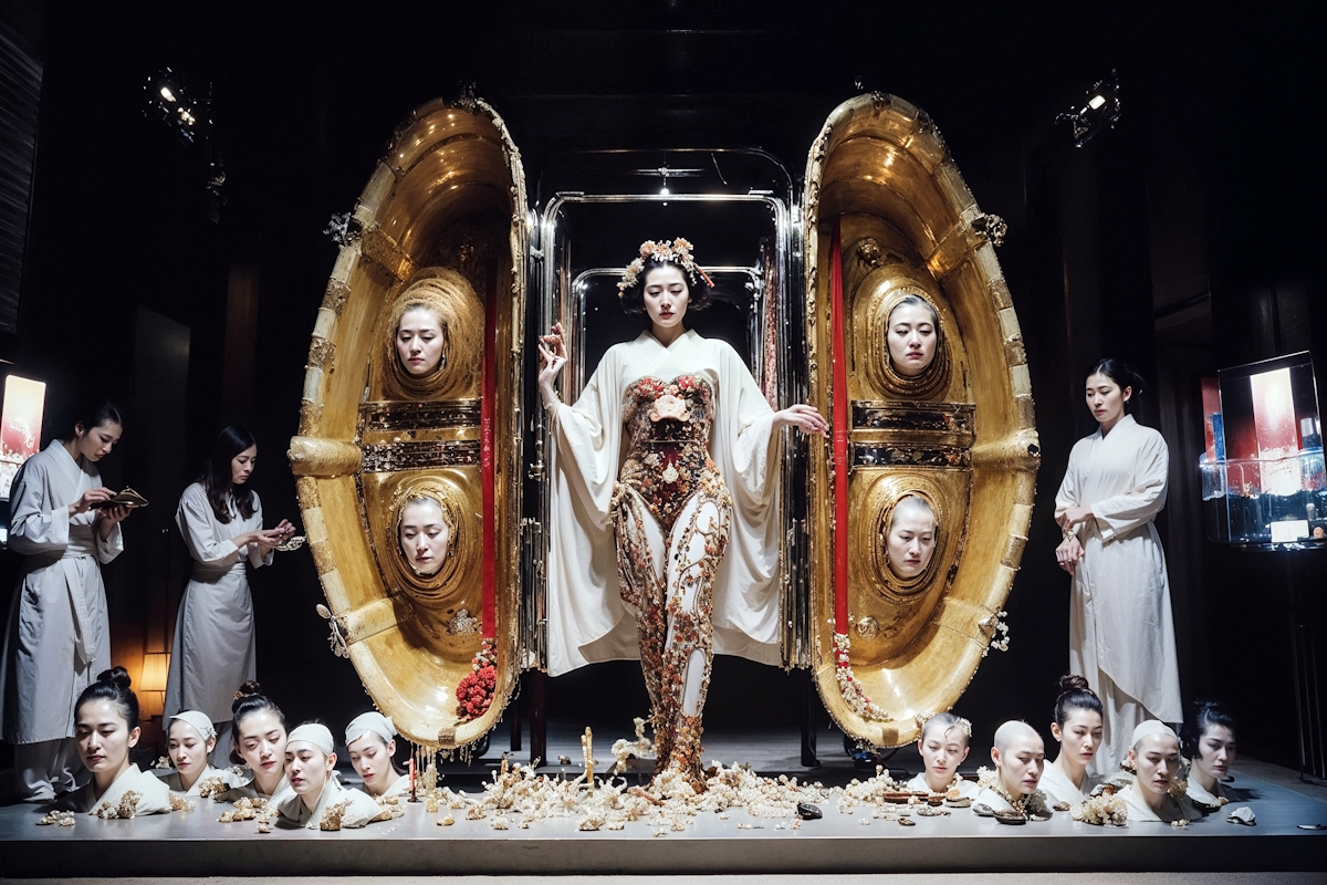 The inquiry here is not to lament the absence of a "ghost" (ego). Instead, it adopts the Buddhist perspective of engi (dependent origination), where the self does not exist in isolation but is a transient, "empty" phenomenon, conditionally arising through its relationships with others. From this standpoint, the exhibition interrogates how algorithmic reproduction makes this "empty vessel" of the self visible and rewrites our very sense of lived experience.