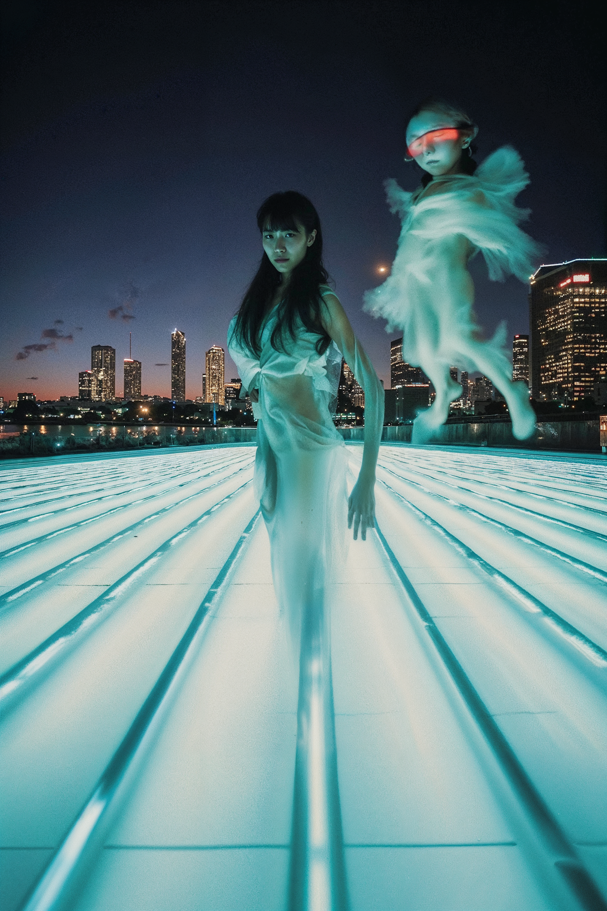 None of the people depicted here exist. They are fictional portraits generated by an AI, referencing the world of the 1995 film Ghost in the Shell and interwoven with fragments of the artist's own facial data, treated as an impersonal material like paint. Inhabiting their cybernetic bodies, these figures exude a sense of drama, sorrow, and intimacy in their quiet, everyday moments.